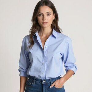 Reiss Jenny Cotton Long Sleeve Cotton Poplin Shirt Blue Size 2