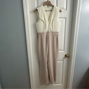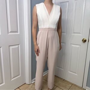 Reiss Jumpsuit Pink White Straight Leg Work Color-block Business Size 8 Medium