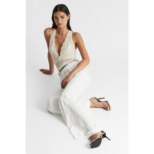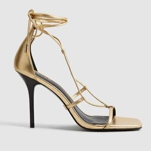 Reiss Kali Leather strappy Stiletto wrap Sandals in gold Metallic size 37 MSRP: $285