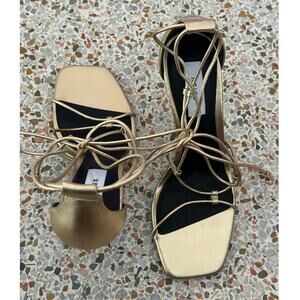 Reiss Kali Leather strappy Stiletto wrap Sandals gold Metallic size 37 MSRP $285