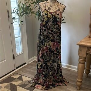 Reiss “Kyra” Maxi Dress Pleated Skirt Floral Spaghetti Straps Size 4 Side Slits