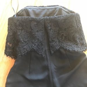 Scalloped lace tiered bodice overlay, solid wide-leg pants