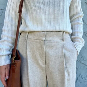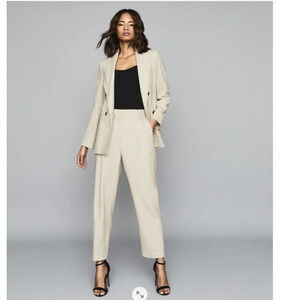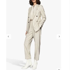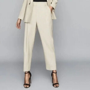 Reiss Lauren Wool Linen Blend Jogger Trouser in Oatmeal Beige Size 10