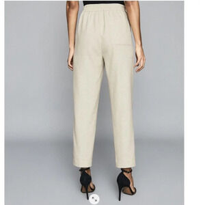 Reiss Lauren Wool Linen Blend Jogger Trouser in Oatmeal Beige Size 10