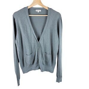 Reiss Linen Blend Knit Cardigan with Pockets Size Large