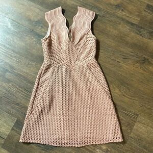 Reiss Marianna Structured Lace Fit And Flare Dress pink blush