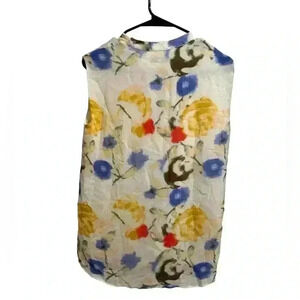 Trendy and beautiful blouse. Flowy and lightweight. Sleeveless. Lined. Button front closure. Vibrant colors with floral pattern.