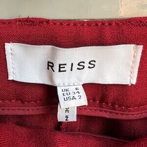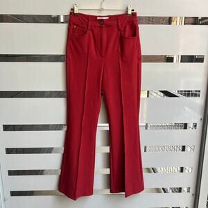 Reiss maroon red flared suit trousers. Flared hems, crafted from a smooth-feel fabrication for a natural fluidity. Mid rise with side pockets and pressed creases down the leg. Button and zip closure. Unlined. In great condition. Size US 2 / UK 6 - 13" waist; 11" rise; 28.5" inseam.