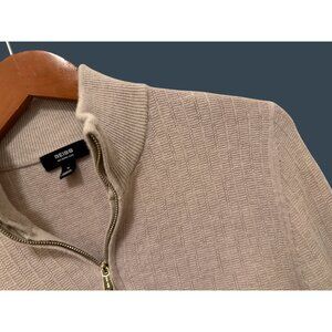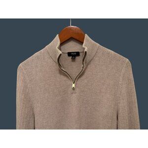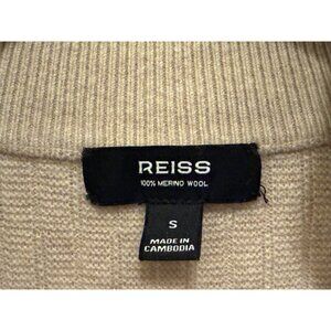 Reiss Mens Beige 1/4 Zip Merino Wool Textured Sweater Business Casual