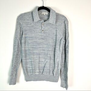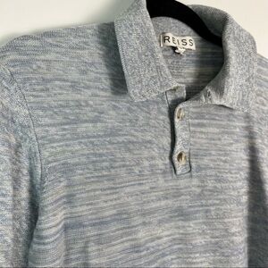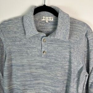 Reiss Mens Polo Sweater Blue White Collared Melange Button Long Sleeve Cotton M