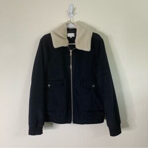 Reiss Mens Rivet Full zip wool navy bomber jacket L