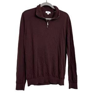 Reiss Merino Wool 1/4 Zip Funnel Neck Pullover Sweater Preppy Casual Maroon Sz L