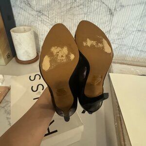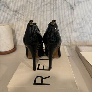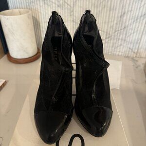 - Reiss mesh heeled booties with patent leather accents (at tip, heel, and down the middle)