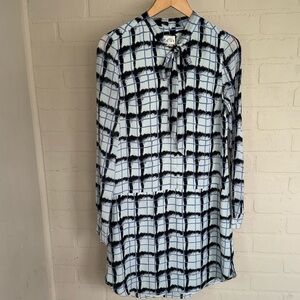 Reiss Miami Tie Neck Long Sleeve Dress size 6 US check windowpane print lined