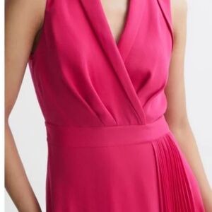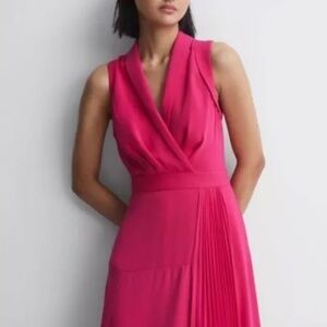 Reiss NWT Claire Pleated Fitted Wrap Style Midi Dress Pink Womens Size 2