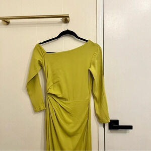 Reiss Nadia drape dress. Asymmetrical neckline. Lime green chartreuse. Midi length, hidden side zipper. Gently used condition. Size 0
