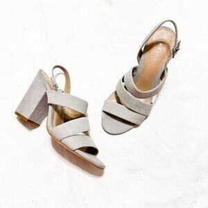 Reiss Naomi Block Heel Sandals Gray Suede Leather NWOB Size 38 Brazil