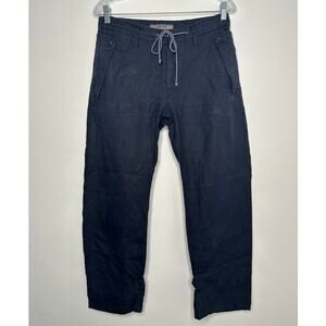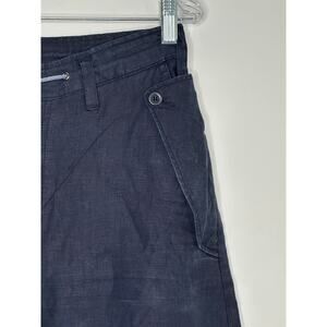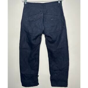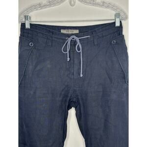 Reiss Navy Blue women's cargo 100% linen casual drawstring cropped pants size 28