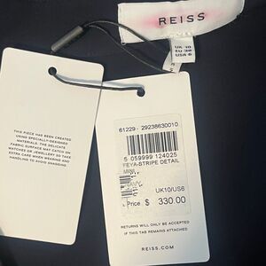 Reiss Navy Feya Stripe Oversized Mini Shift Dress Collar V Neck Pockets Sz6
