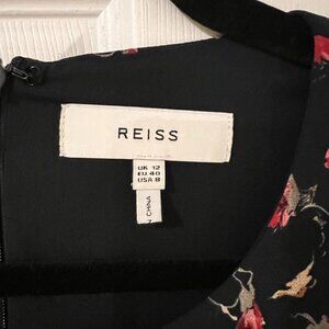 - Reiss Navy Louise Floral Print Mesh Trim Dress NWOT
