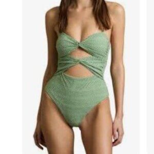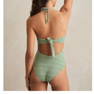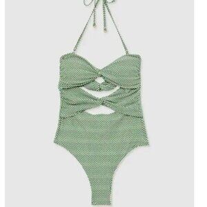 Reiss Nelly Chequered Print Cut-Out Swimsuit Green/White–Size 6–NWOT MSRP $235