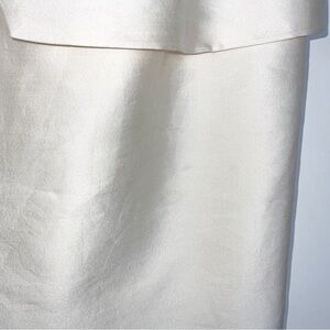 Reiss mini peplum skirt in an off white cream color, size 4. Wool and silk satin. Tiered layers at the waist. Fully lined, concealed zipper on the side. 3" slit in the back. Best to wear for an elegant dinner party or formal event. Could be perfect for a bride. Couple of stains. Front top right hip corner, front center of peplum, back on right panel and back top left hip corner. All very subtle and can be hidden with accessories. Very beautiful and sophisticated skirt at an incredible price. Bundle for an even better offer!!!