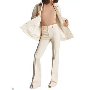 Reiss Pants Womens 4R Florence High Rise Flared Trousers in Cream Denim Career