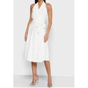 Reiss Piper Halter Neck Wrap Midi Hollow Back Midi Dress White EU 42/ US 10