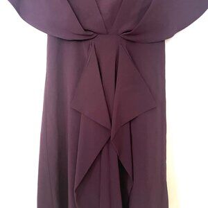 Stunning and sophisticated ✨ This plum Reiss cocktail dress is the perfect statement piece for weddings, parties, or evening events. Features a dramatic open back with button closure, elegant cape-style sleeves, and a cascading layered front detail that flatters every figure.