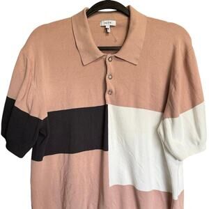 Reiss Primo Press Stud Polo Shirt Colorblock Short Sleeve Pink White Size XXL