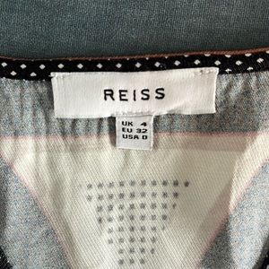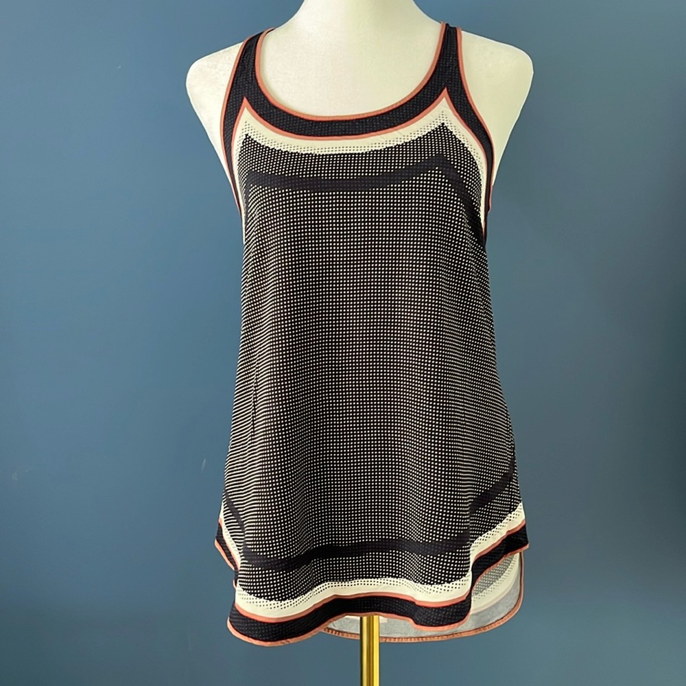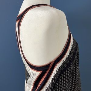 Very chic! Longer in back with racer back. 100% viscose. Brown, black and white. Reiss size US 0. Sophisticated. Luxe.