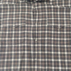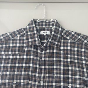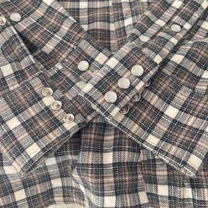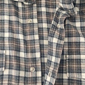 Cotton shirt. Very soft and gentle to the touch and to the body. 100% cotton. Fastens with rivet buttons. Size M. Decorated with two pockets that are also fastened with rivet buttons.