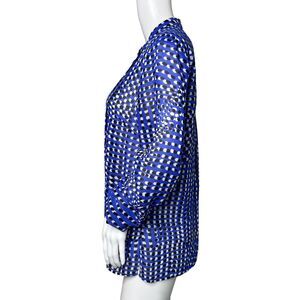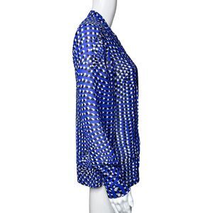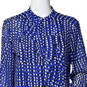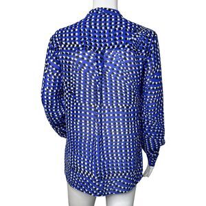 Reiss Shirt Womens 6 Blue Black Lea Spot Print Button Up Casual Work Office