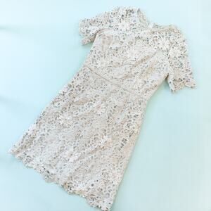 Reiss Silver Gray Short Sleeve Sequin Lace Cocktail Formal Dress Size US 8