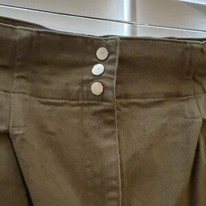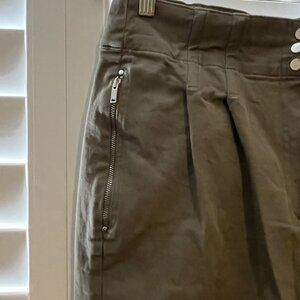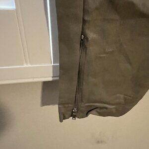 Sleek and stylish dark green jogger pants crafted from soft, comfortable material perfect for both athletic activities and casual wear. These versatile pants feature convenient zip pockets and a flattering tapered leg design with ribbed cuffs. The elastic waistband with decorative buttons adds a fashionable touch while ensuring a comfortable, adjustable fit. #AthleisureWear #ComfortStyle #ModernCasual Reiss Size 12