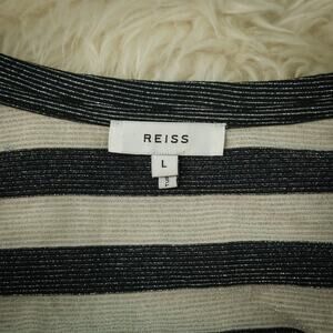 Reiss Size Large L Novaa Black Cream Metallic Stripe Print V Neck Short Sleeve C
