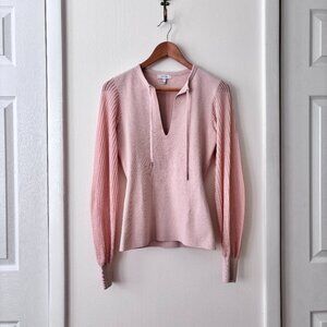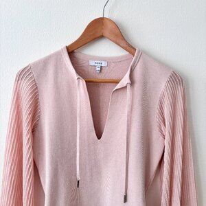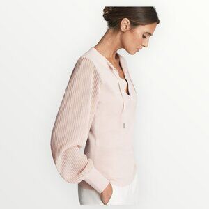 Reiss Sloane Hybrid Knitted Semi Sheer Sleeve Top in Blush