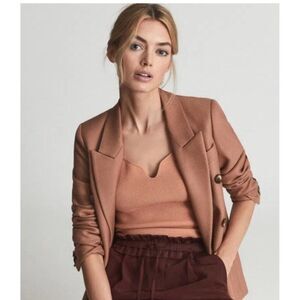 Reiss Solid Beige Sweetheart Ribbed Tank Knit Top Xs