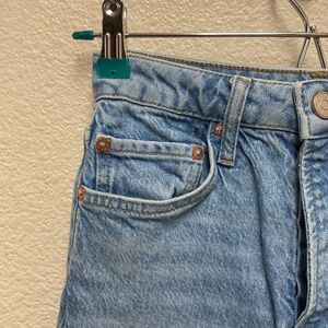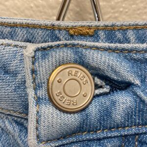 Light wash straight leg jeans from Reiss. 5 pockets, button fly. Size 24.