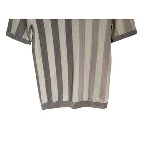 Reiss Striped Wool Cotton Polo Shirt With Half-Zip & Collar In Beige & Gray Size