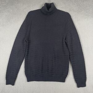 Reiss Sweater Mens Medium Blue Wool Blend Textured Turtleneck Pullover Knit