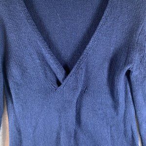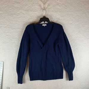 Reiss Sweater Womens Medium Navy Stretch Knit Surplice Neck Ribbed Pullover 8539.