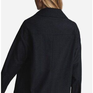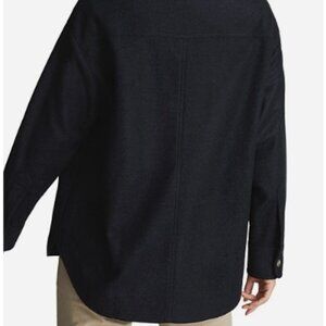 Brand new with tags. Inspired by classic workwear, the Tilly overshirt from Reiss is crafted in a luxe wool-blend flannel with a tactile finish. Designed in a deep navy hue, it features flap chest pockets, slanted slip pockets, and mottled cream-and-brown buttons for a refined utility look.