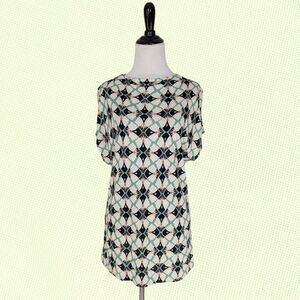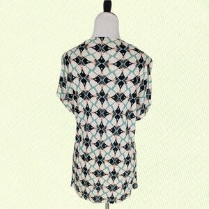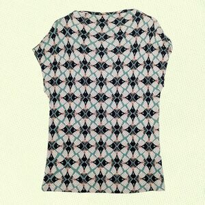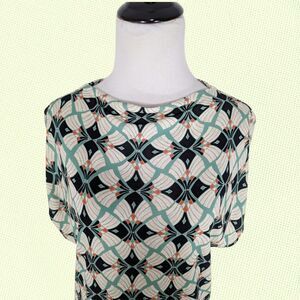 Reiss Top S High Neck Floral Jersey Green White Work Office Occasion Abstract