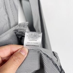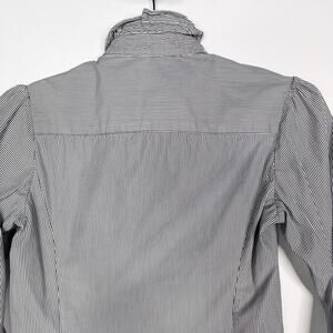 Reiss US 2 Black White Pinstripe Ruffle Mock Neck Long Sleeve Blouse Top Cotton