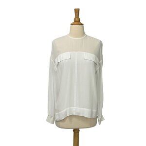 Reiss White Camille Semi Sheer Twin Pocket Top Blouse Viscose Lined EUC Size S