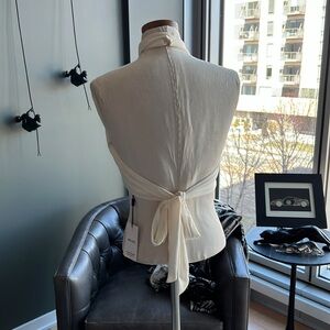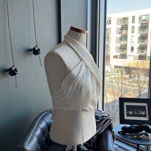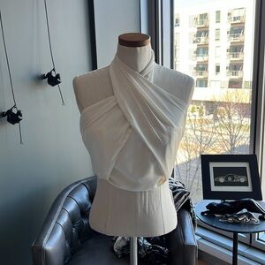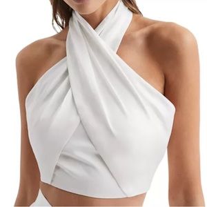 Silky soft halter crop top that wraps in the front and has a button closure at the back. Perfect for stylish outings and vacations. Only worn once!