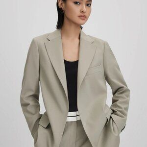 Reiss Whitley Wool Blend Single Breasted Suit Blazer in Size 4 (US) in beige/ivory/cream color. I'm not sure if the blazer is the exact one in the stock photo but it's a very similar style.