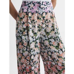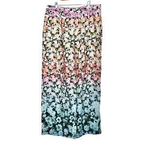 Reiss Wide Leg Trouser Pants High Rise Ombré Floral Print Beach Loungewear 14