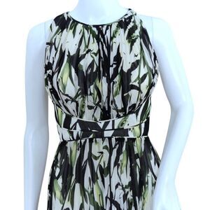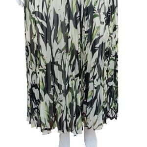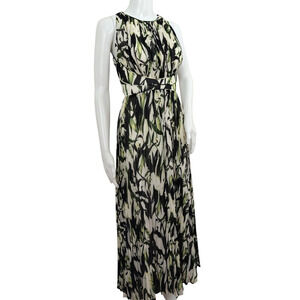 Reiss Winnie printed pleated maxi dress in women's size 2. Beautiful leaf print in greens. Lined. Sleevelesss. Keyhole opening in the back. Has two zipper closures in the back. Model photo shown for style - not color. Gently pre-owned. No flaws.